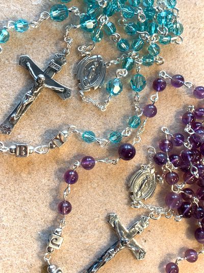 Recently I special ordered a monogrammed rosary bracelet for a niece (beautiful), a fused glass tray and wall flower vase and love her new metalwork.