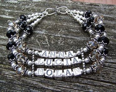 Whether you are a new mother, grandmother or avid sports fan, these custom name bracelets always catch the eye. These bracelets make thoughtful, unique gifts and irreplaceable additions to your own jewelry collection.
